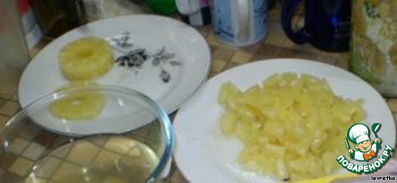 - Ананас (консервированный, желательно в собственном соку без сахара.) — 550 г