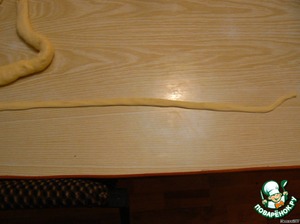 Немного теста оставить для верха пирога на жгутики, а остальное раскатать чуть-чуть больше диаметра вашей посуды, для того что бы получилась чашечка. У меня была большая сковорода. Затем укладываем на посыпанную манной крупой нашу чашечку из теста, нарезанные фрукты яблоки груши и бананы. Можно класть любые фрукты, джемы и все что душе угодно. Манной крупой посыпаем тесто перед тем как класть фрукты для того что бы пирог внутри под фруктами был не сырой. Я укладывала фрукты порезанные кружочками и полу кружочками в такой последовательности первый круг яблоко банан, затем круг груши, затем бананы кружочками, и последний круг яблоко груша.
