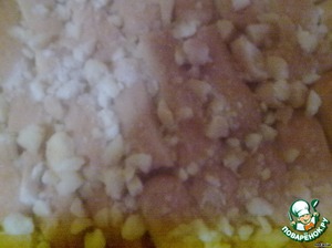 Я взяла бисквитное печенье,можно бисквит(или любое печенье,которое пропитываеться хорошо).Распределить на поднос и пропитать сокм.
