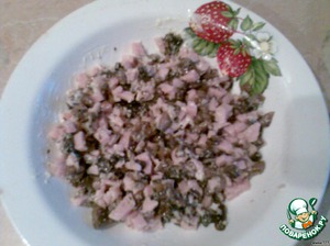 Ветчину мелко порубить.