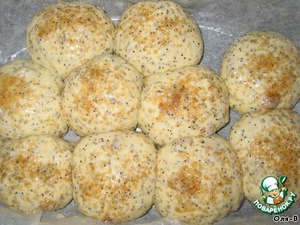 Подошедшее тесто слегка обмять, поделить на 10 шариков, уложить не плотно в форму, затем прикрыв салфеткой оставить еще на 15-20 минут.