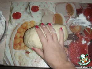 Замешанное тесто выложите на подпыленную мукой доску и тщательно вымесите в течение 7 – 10 минут до тех пор, пока тесто не перестанет липнуть к рукам и доске. -