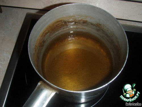 В это время готовим сахарный сироп. Для сахарного сиропа добавьте в горячую воду нужное количество сахара и столовую ложку меда и при нагревании добейтесь полного растворения сахара. Доведите раствор до кипения и поварите при слабом кипении около 15 минут. -