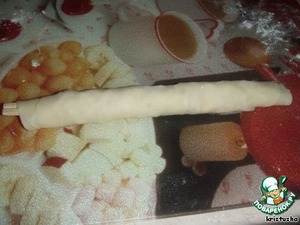 Соберите свернутое тесто в гармошку, снимите с палочки и заправьте внутрь кончики.