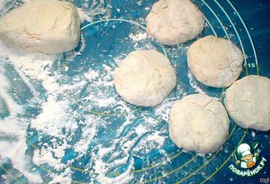 Кусочки теста обвалять в муке, придав форму оладьев.