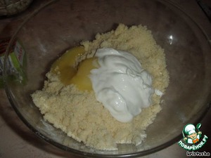 Муку просеять. Сливочное масло, нарезанное кусочками, положить в муку и руками перетереть в крошку.