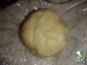 Вымесить гладкое тесто, немного липкое. Завернуть его в пищевую пленку и убрать в холодильник на 20 мин.