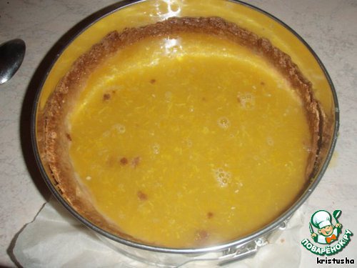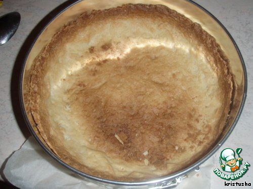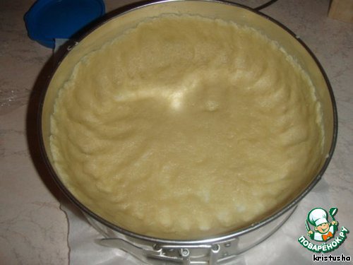 Разогреть духовку до 180°С. Дно формы выложить кругом пергамента, закрыть борты. Охлажденное тесто выложить в форму (d=22) сделать бортики ~3 см.