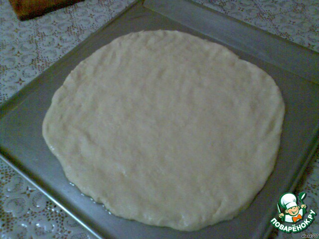 Смазать противень раст. маслом и масляными руками размять тесто в виде круга.