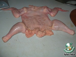 С курицы снимаем кожу, ножки и крылышки я оставляю полностью.