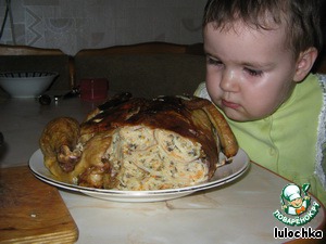 Начиталась я про фаршированную курочку, пробовала несколько раз, вкусно, но сделать не решалась. А сегодня что-то торкнуло, и вот..... а еще у меня маленький ребенок он тоже оценил, т. к. курочка у нас оказалась универсальная и для папы с грибочками, и для дочи с морковкой. ПОПРОБУЙТЕ!