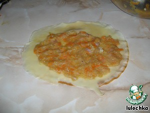 Перемешиваем фарш +соль, перец и заворачиваем плотно в блинчик. -