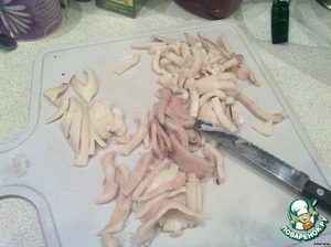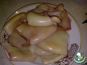 Соус на сковороде помешиваем, он должен слегка загустеть, режем кальмаров соломкой.
