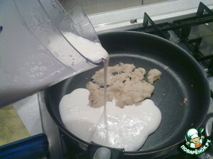 Смешиваем молоко с мукой и взбиваем в блендере, полученную смесь выливаем на сковороду.