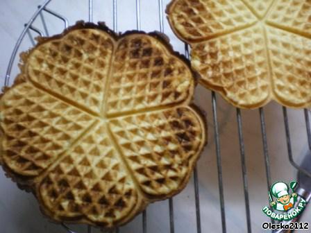 Разогреваем нашу электровафельницу, выкладываем тесто. Печём наши вафли. Остудить на решётке.