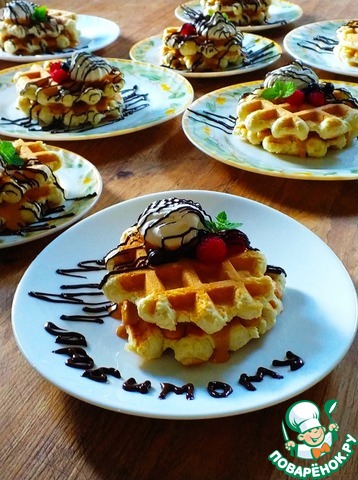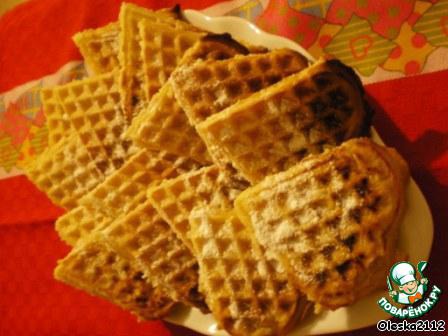 Вот такие вкусные и ароматные вафли получились у меня. Я их сверху посыпала сахарной пудрой. Можно кушать с джемом, вареньем.