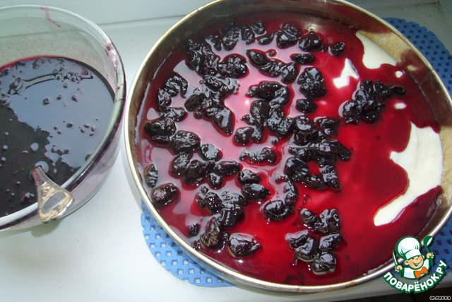 А потом сверху выкладываем остывшее варенье с желатином. И снова в холодильник часов на 5-6 или на ночь. -