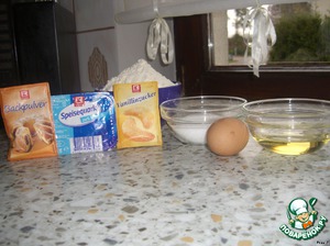 В тесто пошло, смешно признаться, всё, что в холодильнике завалялось: 1 пачка творога 5%, 1 пачка сладкой творожной смеси с курагой, так как обе пачки были по 180 г, до ровного счёта добавила 50 г детского творожка для малышей и 2 столовых ложки остатков сметаны. Всё перемешала до однородной массы, потом добавляла остальные ингредиенты. Масла растительного взяла не 8 ложек, а 4 (на одну порцию), так как в составе сладкой творожной смеси уже было сливочное масло, судя по упаковке.