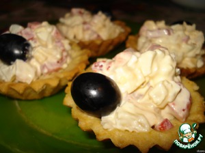 Готовую начинку выложить на тарталетки и украсить виноградом. Тарталетки готовы. Смачного!!!