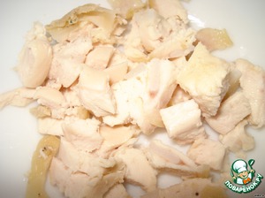 Перейдем, непосредственно, к начинке тарталеток. Жареную курицу (http://www.povareno k.ru/recipes/show/34 912/) порезать квадратиками.