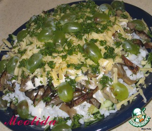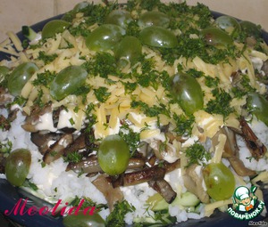 - Виноград (белый, для украшения, но вкус салата от наличия в нем винограда становится интереснее и праздничнее)