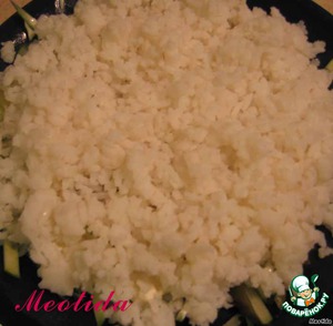 на огурчики выкладываем слой риса, смазываем немного майонезом