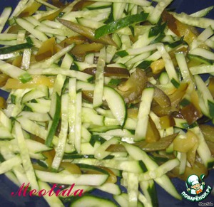 огурчики нарезаем соломкой,перемешиваем и выкладываем слоем на большую тарелку, слегка смазываем майонезом