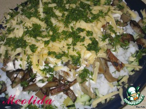 в моем сердце грибы вешенки упорно занимают первое место среди всех грибов.. и вкус у них какой-то особенно грибной... и вид интересный... а об аромате я вообще умалчиваю... такой насыщенный.. грибной.. сразу хочется закрыть глаза... и мысленно представляешь себя в лесу... хотя и выращивают их специально для продажи... и в лесах их не собирают... да и какой лес в наших донских степях?... ну разве что Вeшки - столица донского казачества радуют глаз обилием сосновых и еловых насаждений... и воздух там такой чистый... лесной.. и то и дело на лихих конях скачут казаки, во главе со своим атаманом.. предлагаю отведать сытный... яркий... сочный... нежный... ну ооооооочень вкусный салат с вешенками... огурчиками.. рисом... такой простой в приготовлении... но он может стать замечательным сытным ужином для Вас или отличным салатиком для праздничного стола..