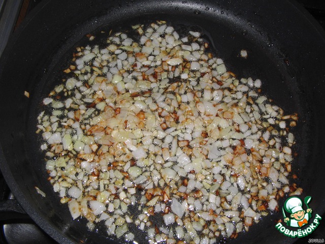 Капустку откидываем на дуршлаг и оставляем остывать. Лук поджариваем на растительном масле до золотистого цвета, НО ни в коем случае не спалить! Как говорит Джейми Оливер - нет ничего хуже сырого лука в котлетах. Ну что ж, послушаемся его, все-таки авторитет!