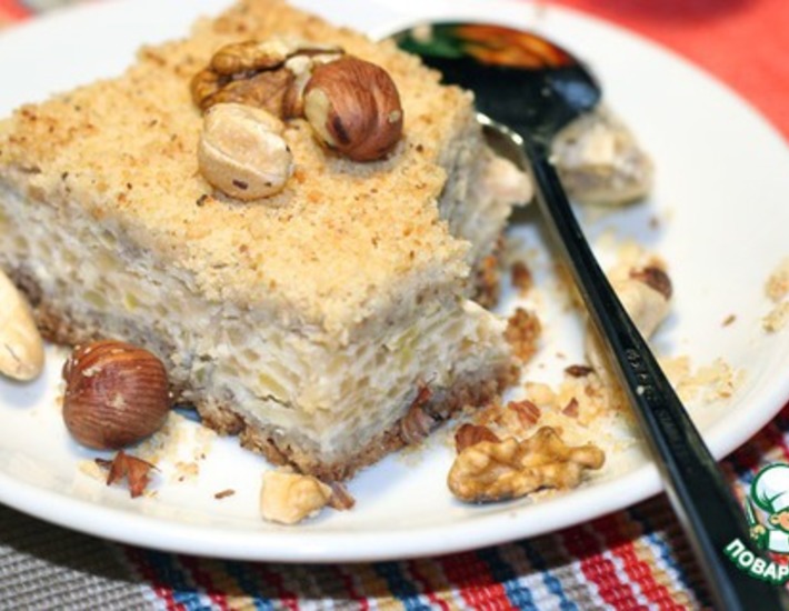 Рецепт «Рассыпчатый яблочно-творожный пирог с орехами»: