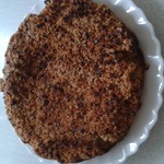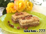 Муку просеять. Сливочное масло нарезать кусочками. Соединить муку, сливочное масло, разрыхлитель теста и сахарный песок (1/2 чашки). Перетереть пальцами до состояния крошки. Добавить, измельченные в блендере, орехи. Перемешать.