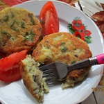 В готовое пюре добавляем яйца,измельченный укроп, вегетту и обжаренные грибочки и муки столько,чтобы получился плотный "фарш" для наших будущих биточков...