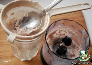 Остальное мясо измельчить в блендере, добавить 3 ст. л бульона и протереть через сито (сито надо покрупнее, чем на фото - замучалась) :-D