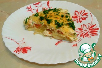 выкладываем всю тыкву натёртую на крупкой тёрке ( её солим и перчим по вкусу), затем оставшиеся зелень и сыр