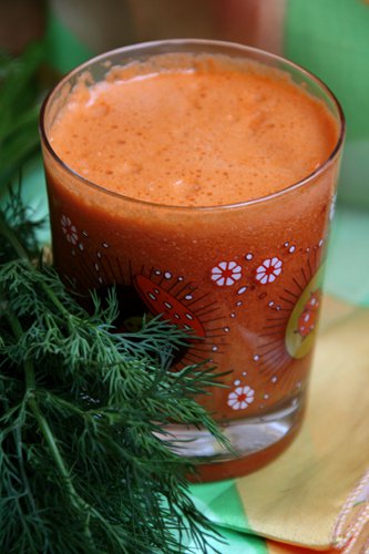 Поместить ингредиенты в соковыжималку, выдавить сок. Обязательно добавить сливки либо немного растительного масла (лучше всего тыквенное), потому что витамин А, содержащийся в моркови не усваивается организмом самостоятельно. Бодрого утра!