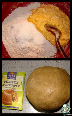 Добавляем к муке и разрыхлителю (на фото - разрыхлитель-винный камень; думаю, можно обойтись и обычным),