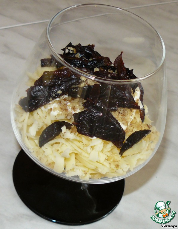 Поверх сыра выложить чернослив.