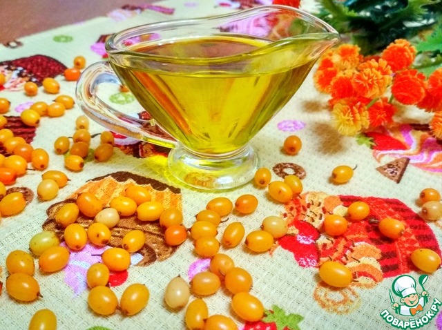 настоенное на плодах облепихи оливковое масло почти не меняет вкус, и приобретает чарующии нотки аромата облепихи. 3 )