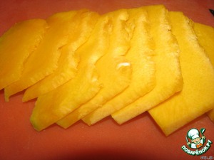 Тыкву очищаем, нарезаем тонкими пластинками.