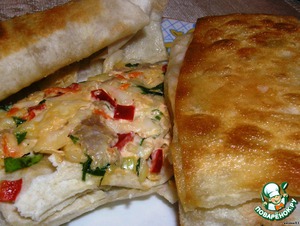 Нарезать лаваш квадратиками завернуть салатик конвертиком и обжарить на сливочном масле до золотистой корочки.