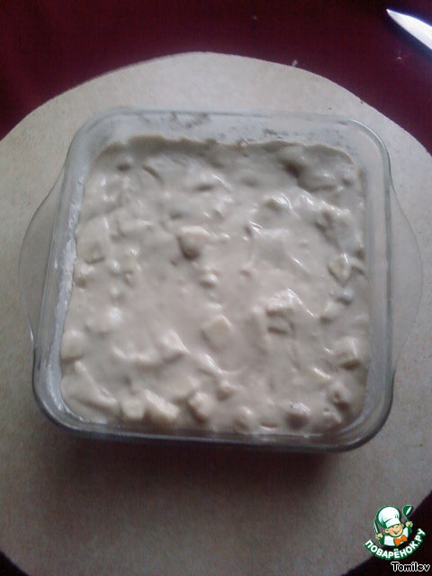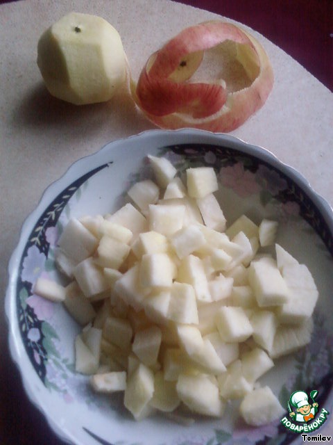 Нарезать кубиками очищенные яблоки. Высыпать в тесто.