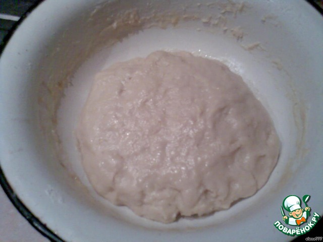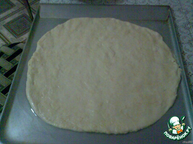 • На смазанном противне распластать руками тесто в виде круга.