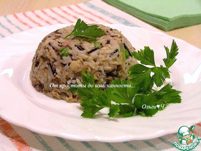 Рис не пригорает и не слипается, получается рисинка к рисинке, пропитывается рыбным вкусом и запахом специй. По вкусу напоминает паэлью с морепродуктами. ; -)