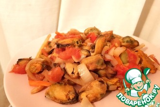 Чеснок вынуть и добавить подготовленные мидии и креветки -
