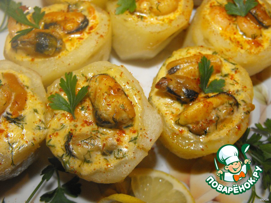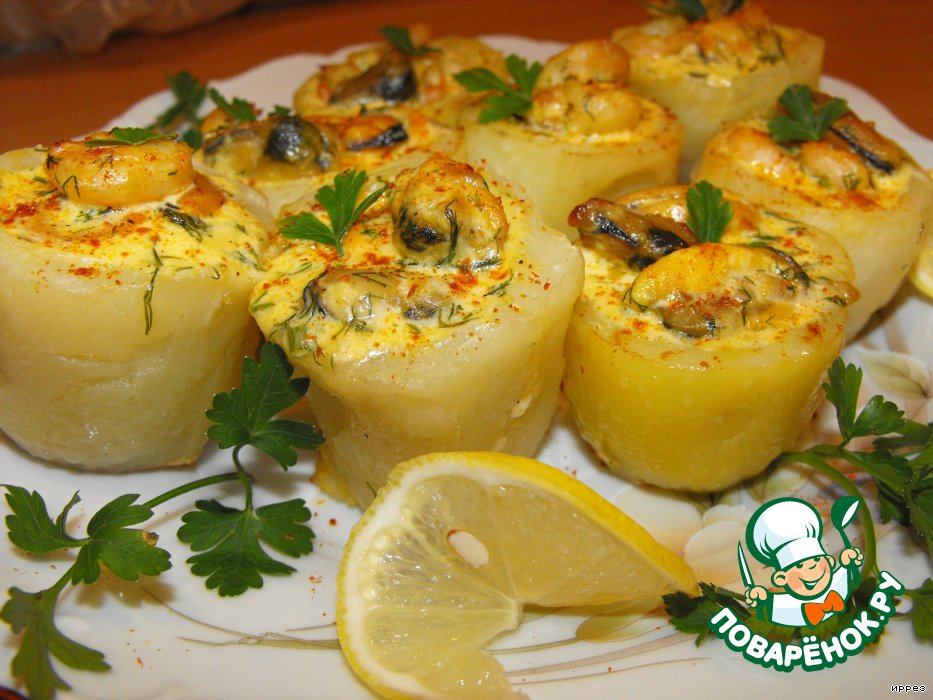 Рецепт «Картофельные стаканчики с морепродуктами»: