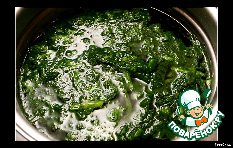 Шпинат отварим до готовности, отожмeм и измельчим в кухонном комбайне до кашецеобразного состояния.