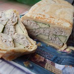 И, в "шахматном " порядке начинаем выкладывать наши рулеты... чередуем блинный рулет с салатным... до конца формы...