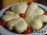 Из оставшегося теста я приготовила печенье. Противень смазывать не нужно, я для подстраховки чуть присыпала мукой.