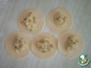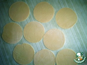 Раскатать тонко тесто, стаканом вырезать кружки.