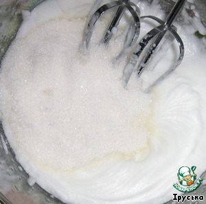 Для начинки. Белки взбить до образования пены, добавить сахар и еще раз взбить.